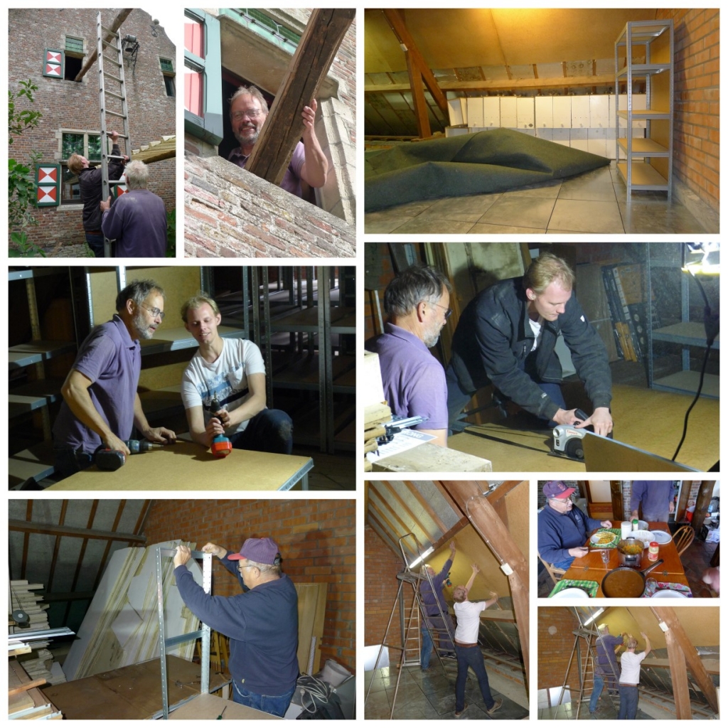 Gerard Sturkenboom, Peter Munnik, Michiel Regelink en John Verpaalen hebben niettemin met de hulp van Leo Struyven op 25 september heel wat werk kunnen verzetten. De fotocollage hieronder geeft hiervan een impressie. Tussen de middag werd ons door de gastvrouw een lekkere maaltijd voorgeschoteld met Vlaamse frietjes, erwtjes en worteltjes en stoofvlees.